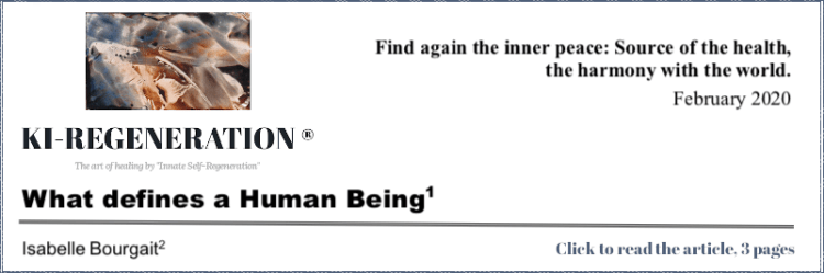 • A sensible dimension: non-palpable, sacred like heartbeat as the stop of the heartbeat separates the two dimensions “energy and matter” and makes the body inanimate. This dimension makes us alive, standing, conscious of “Life”… and balances it.