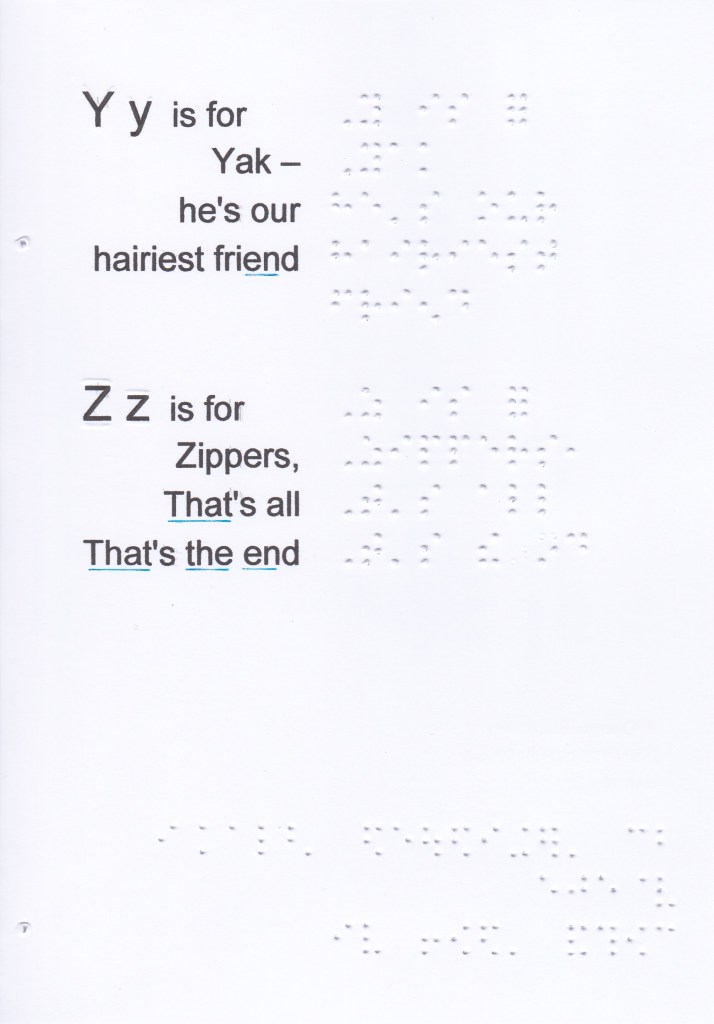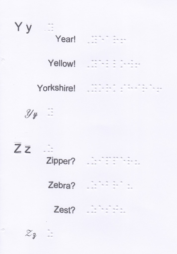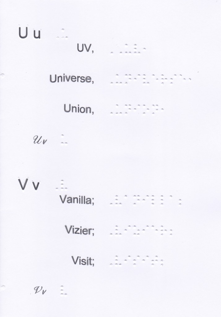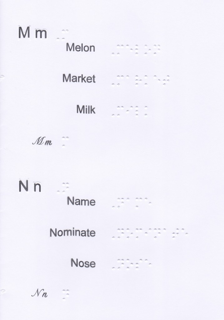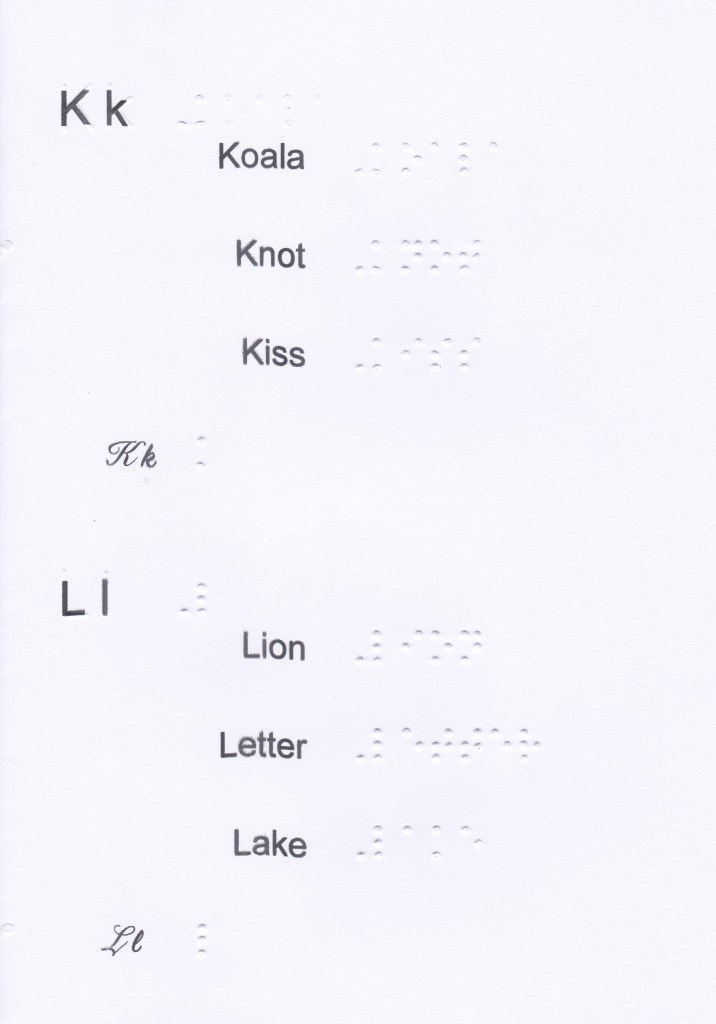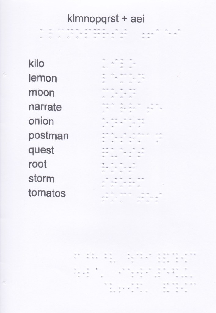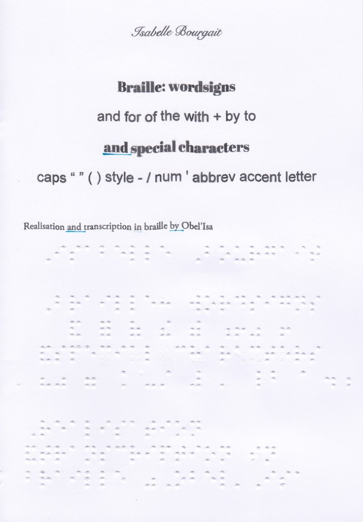 In this booklet you will find the wordsigns, upper groupsigns and 2 lower contractions sequenced, the numbers (in the 1st decade) as well as the main characters for laying out short stories, writing numbers and some particularities such as dates, time, some abbreviations, etc. This is not exhaustive of everything that can be done in Braille (tables, mathematical operations, etc.).