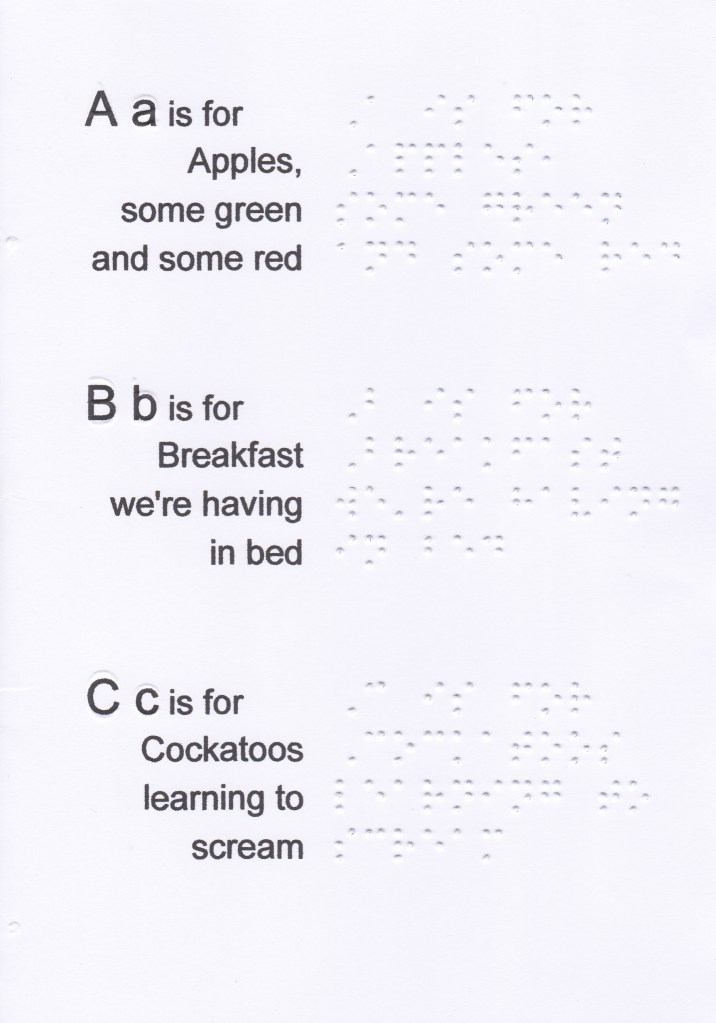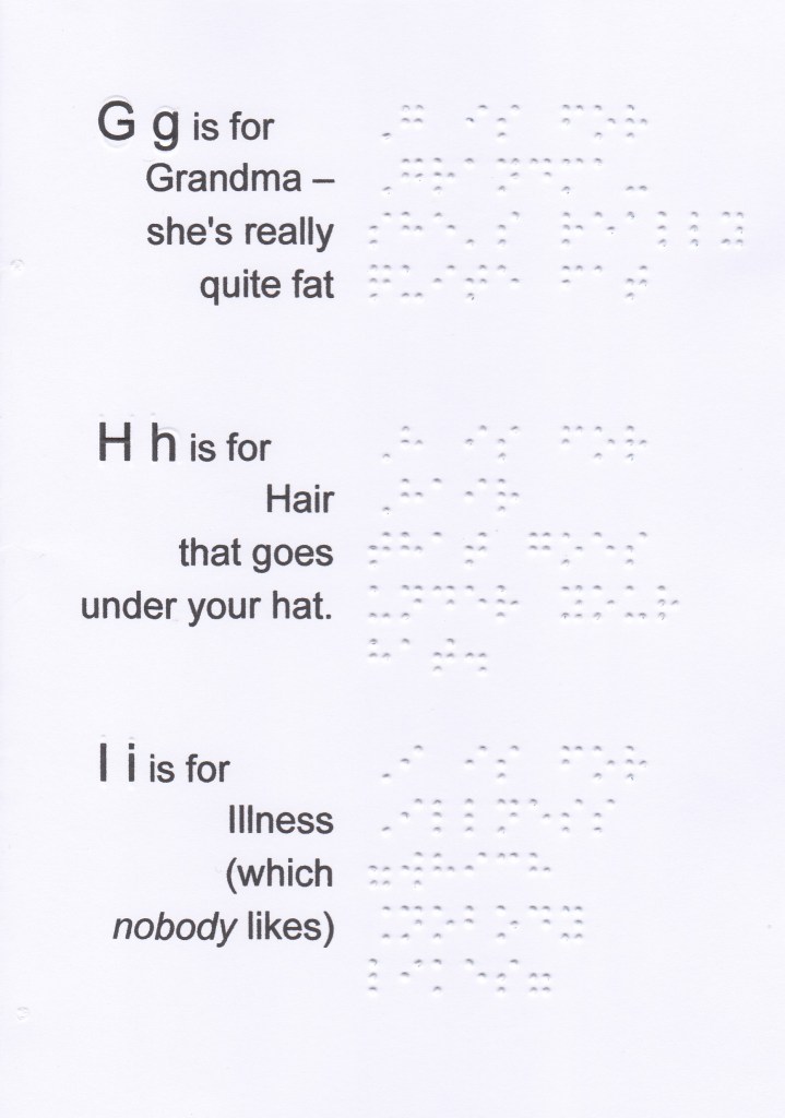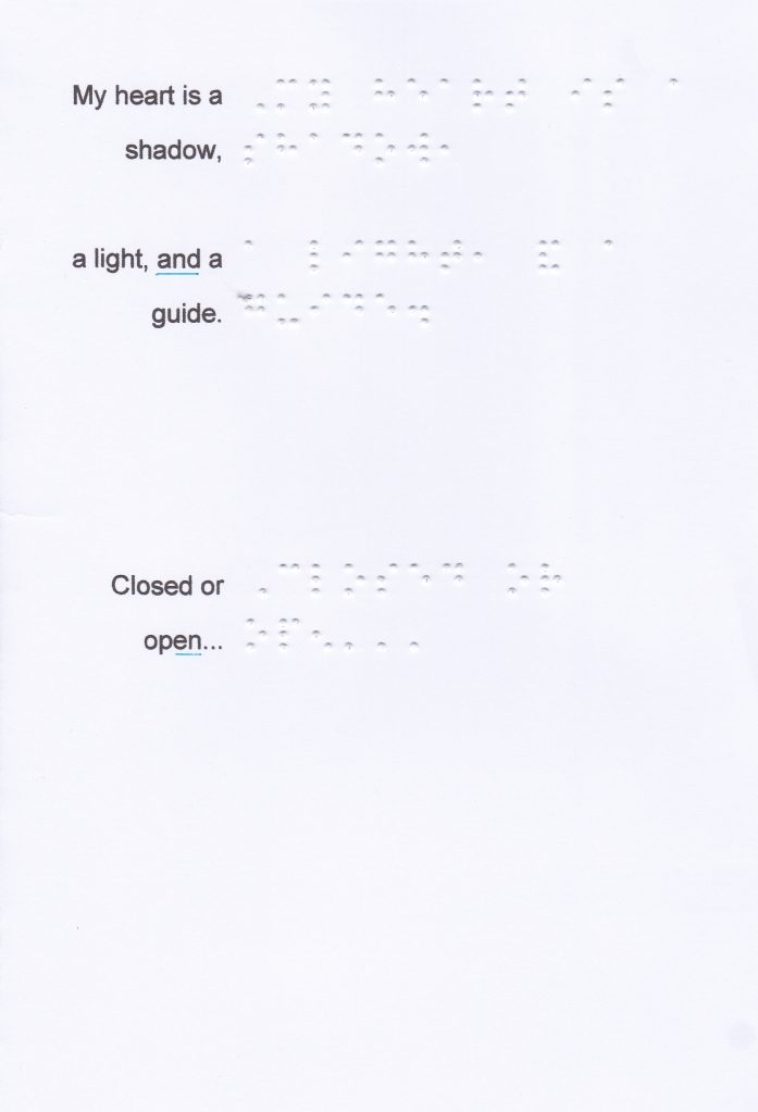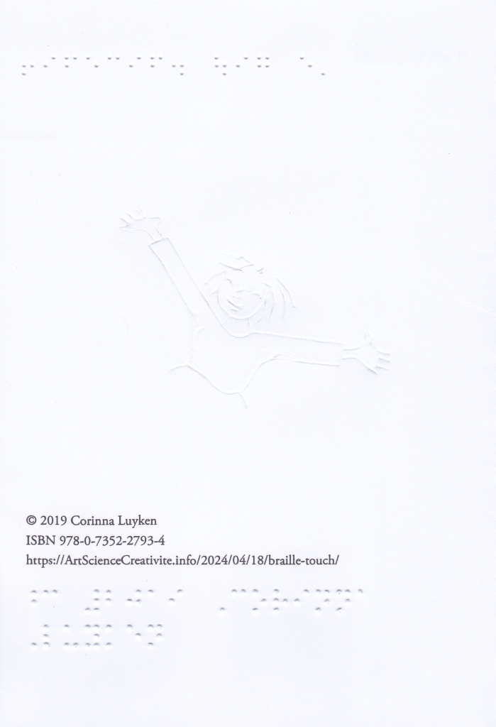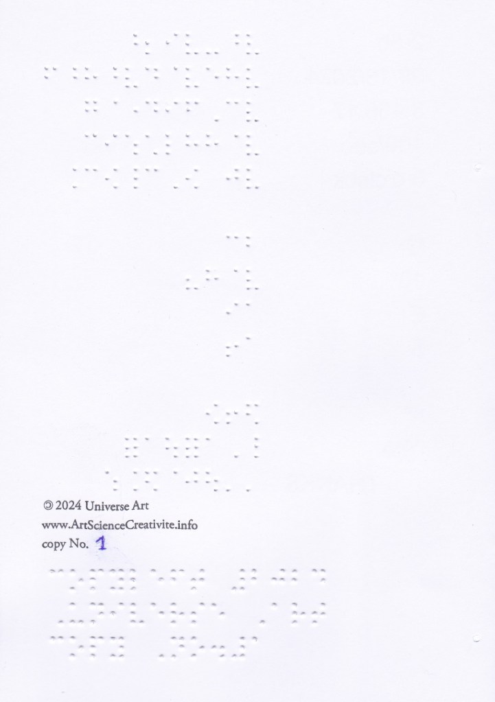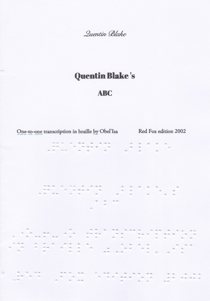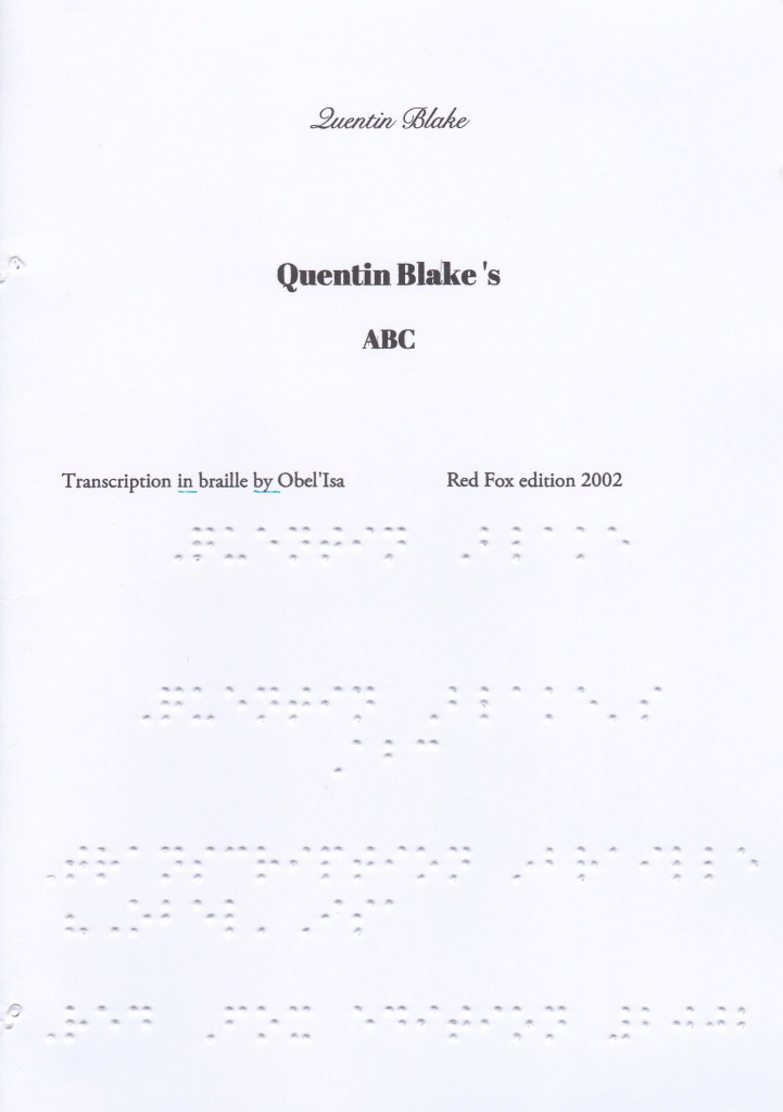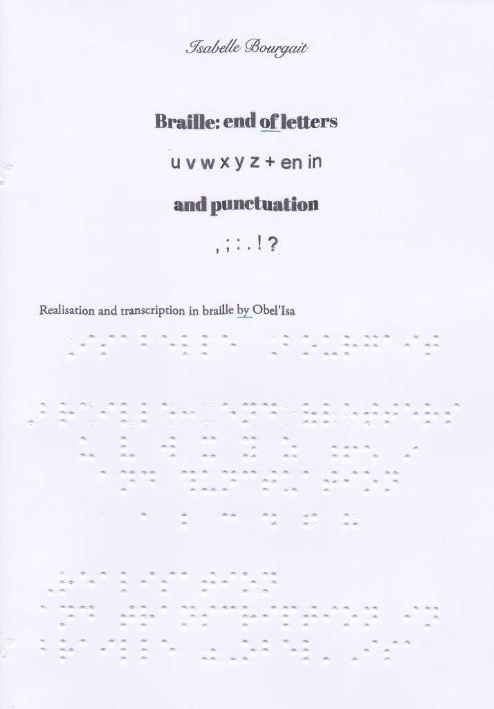If you would like a paper version so that you can practice reading with your fingers, send me a request with your postal address to obel.bourgait@gmail.com. Sending letters in Braille is free, even to foreign countries. I do not have stock, I transcribe the books as requests arise, it takes a minimum of one week (creation and sending).