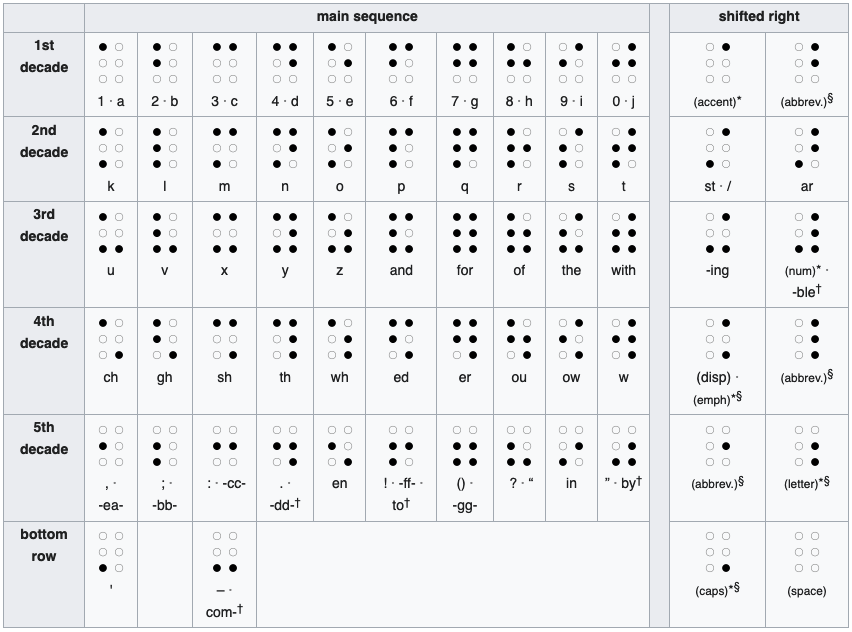 English braille letter chart.