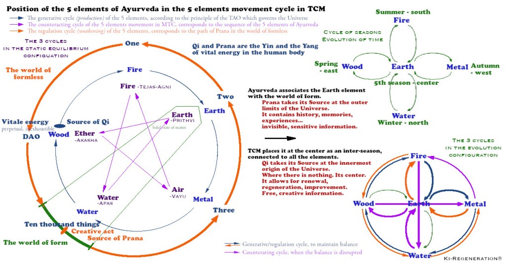 The sequence of the five major elements of Ayurveda corresponds to the cycle of counteracting.