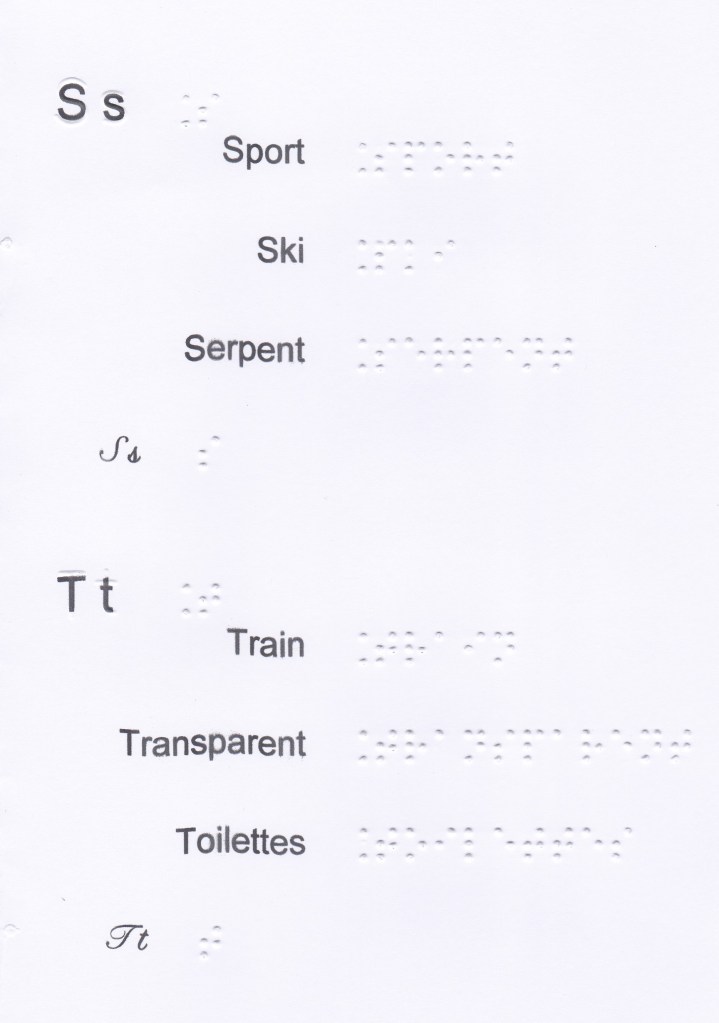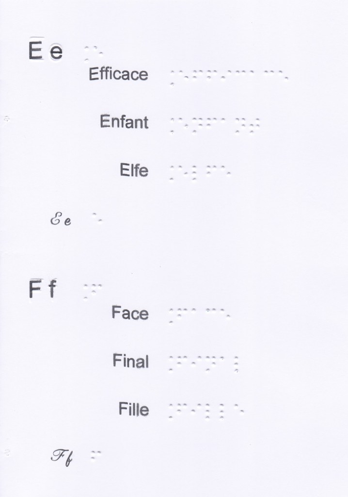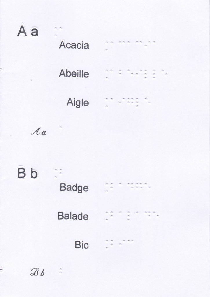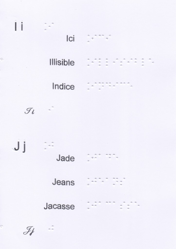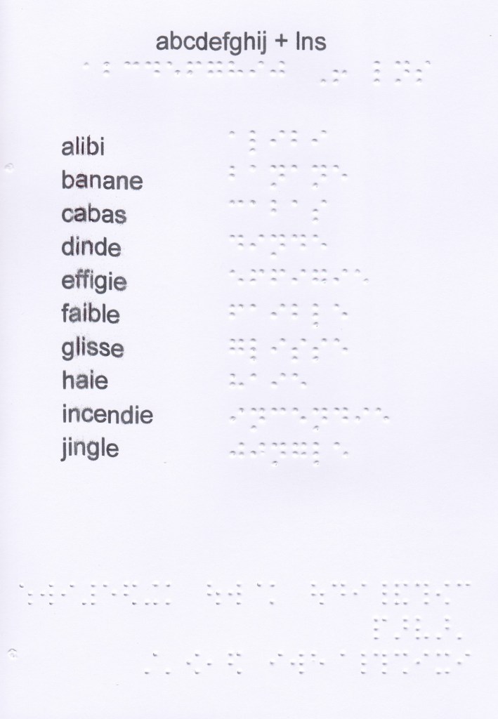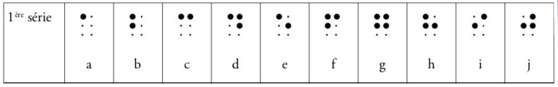 Voici le livret de la première série de braille avec les 10 premières lettres de l’alphabet sans accent.