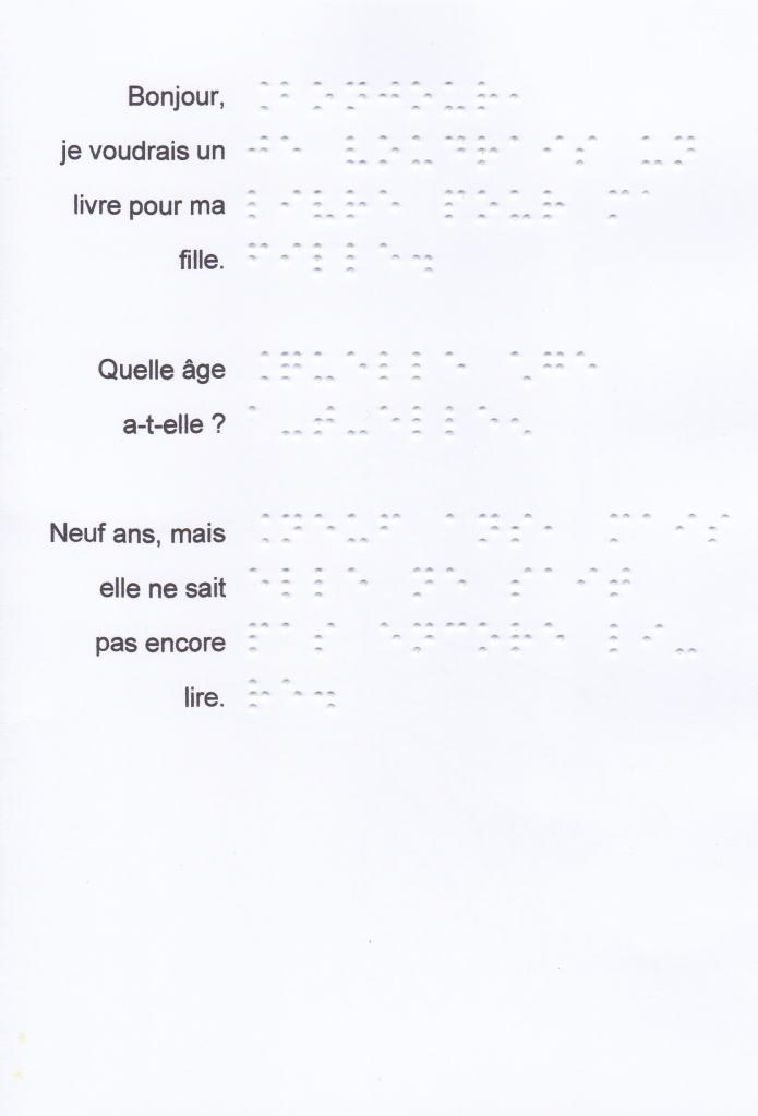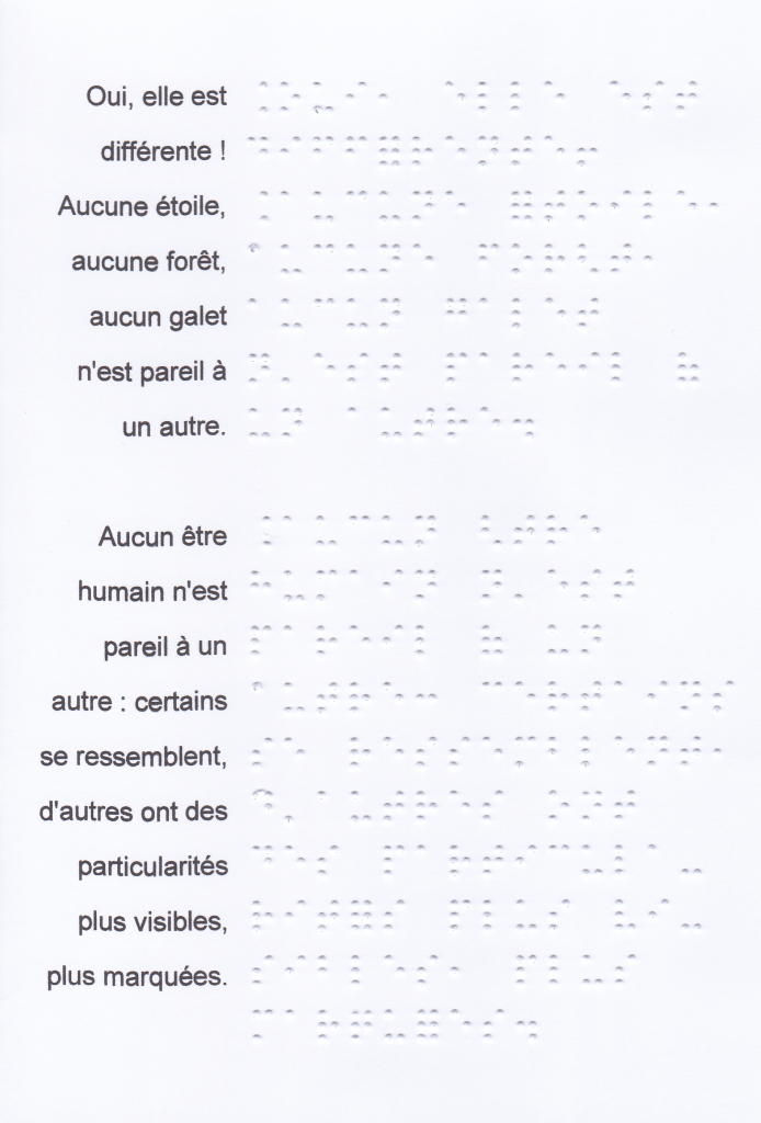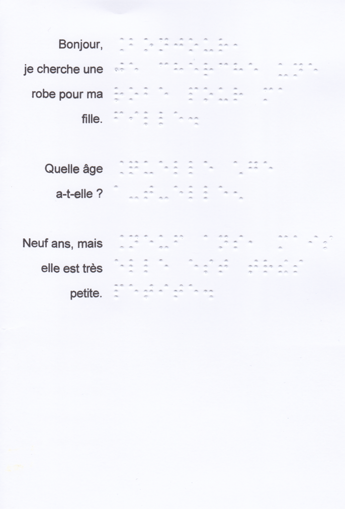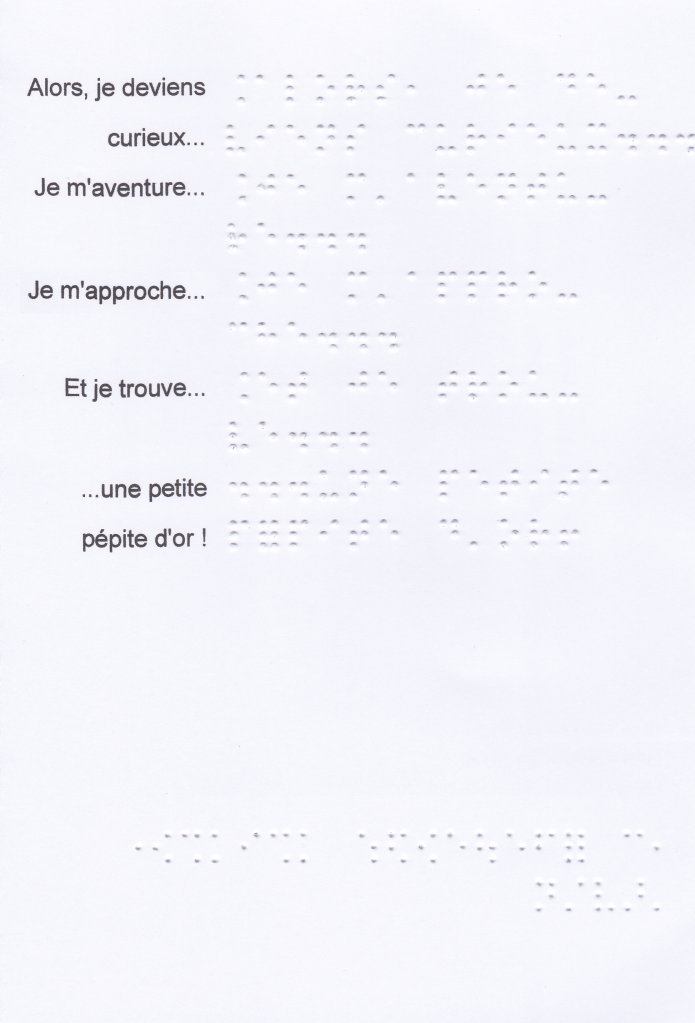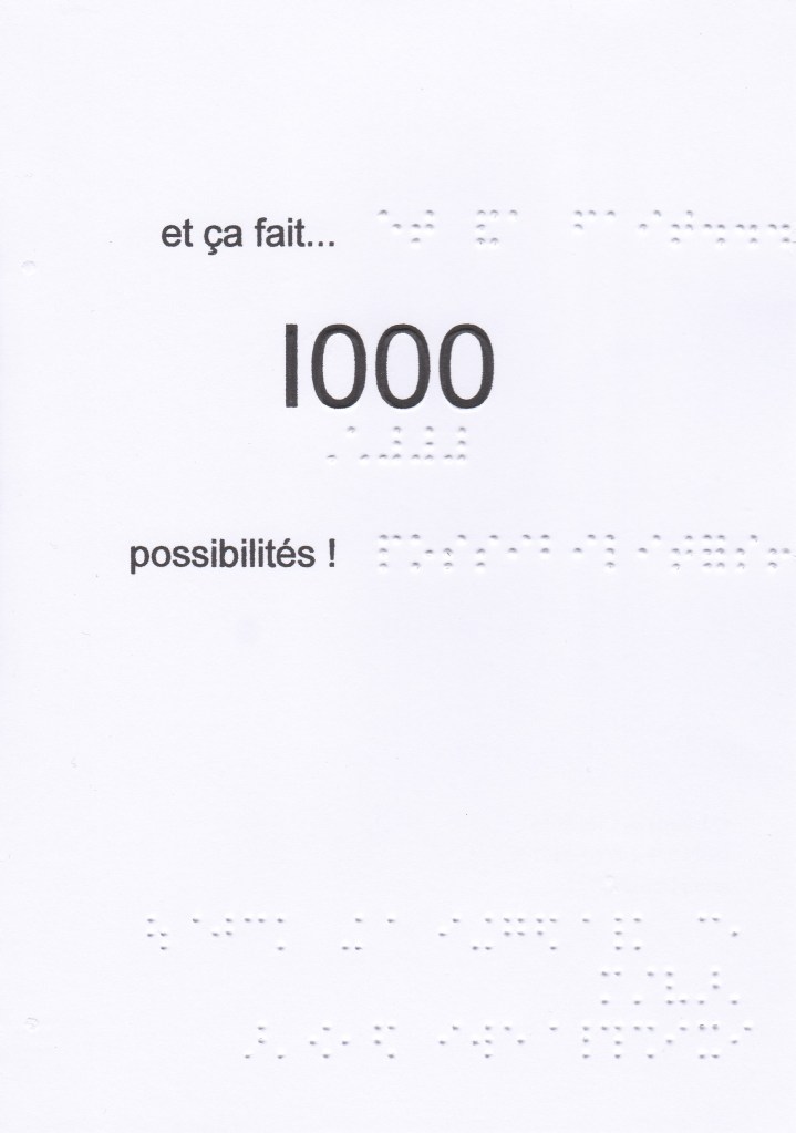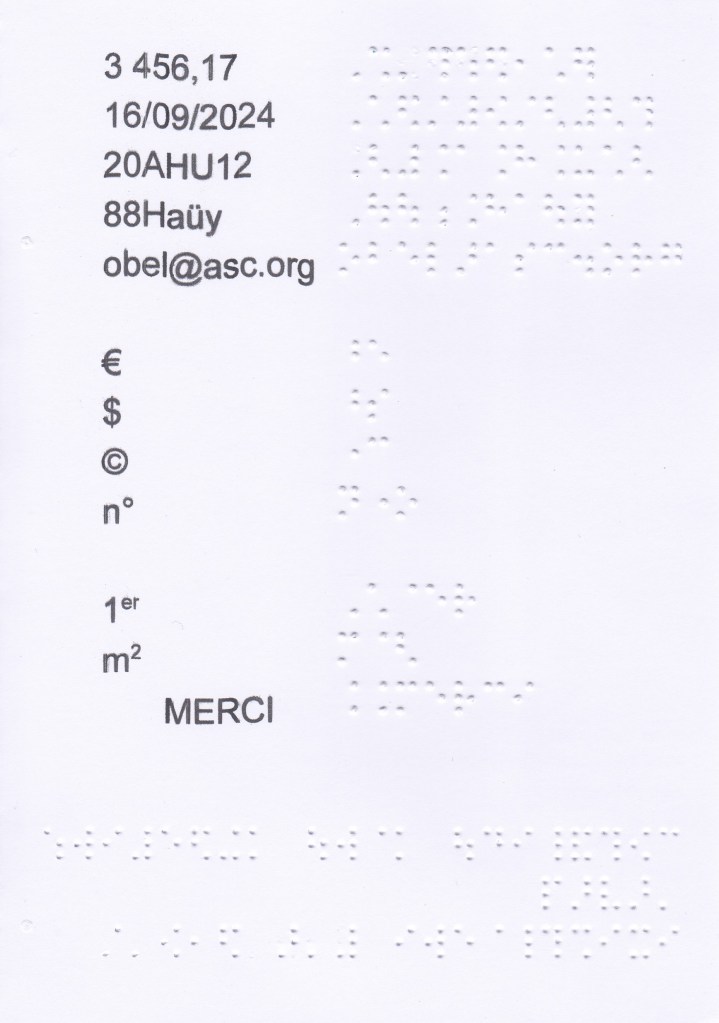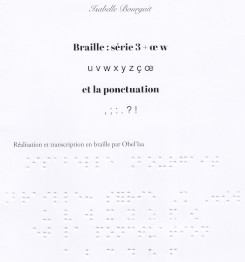 Dans ce dernier livret, vous trouverez les accents, les chiffres ainsi que les caractères principaux pour mettre en page de courtes histoires, l’écriture des nombres et quelques particularités telle que les dates, l’heure, quelques abréviations…. Ce n’est pas exhaustif par rapport à tout ce qui peut être fait en braille (tableaux, opération mathématique…)
