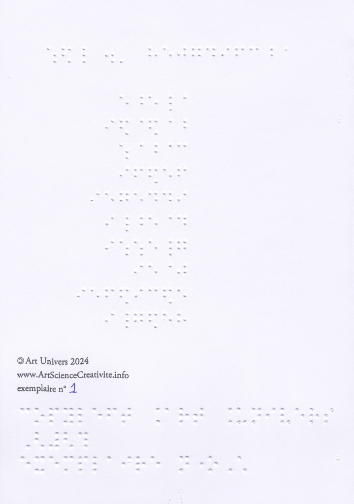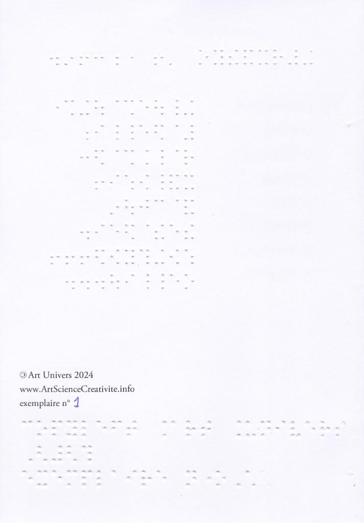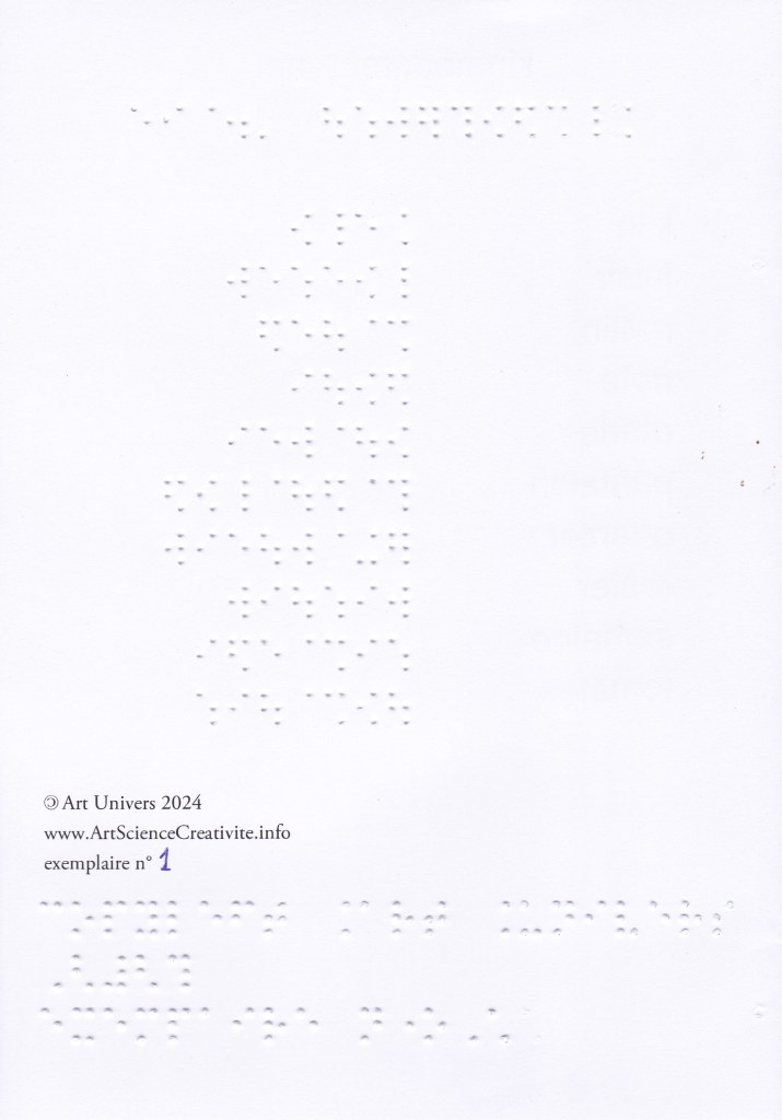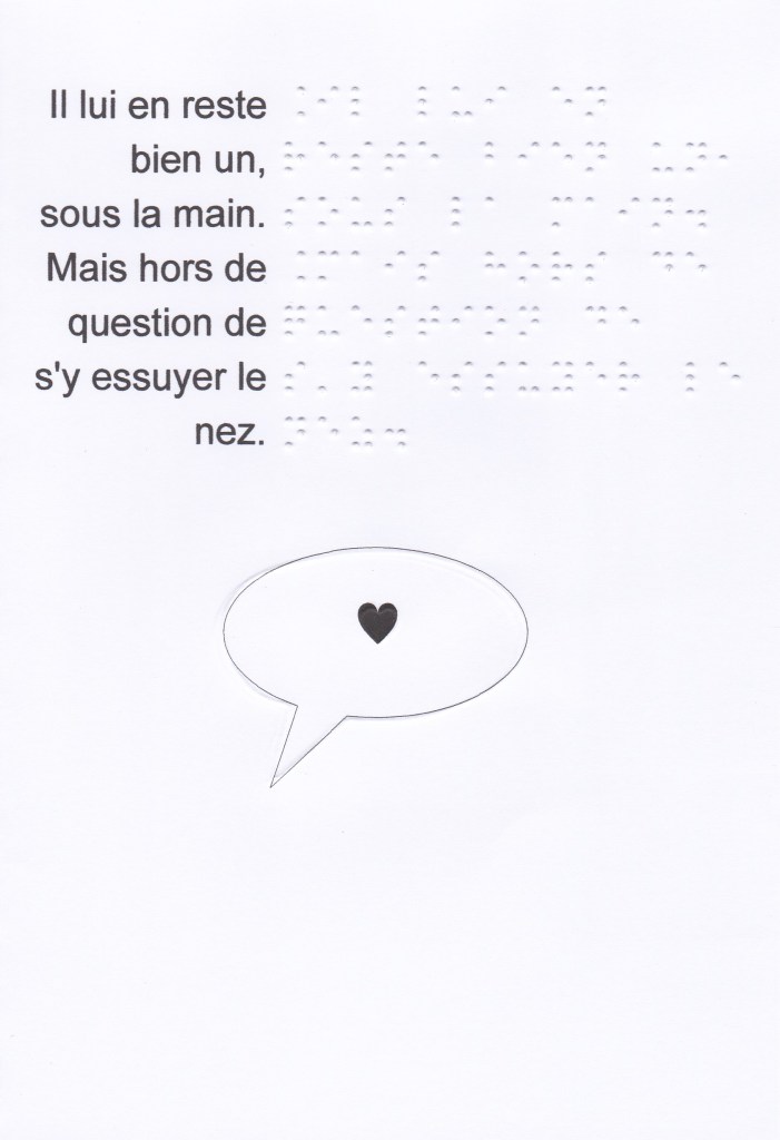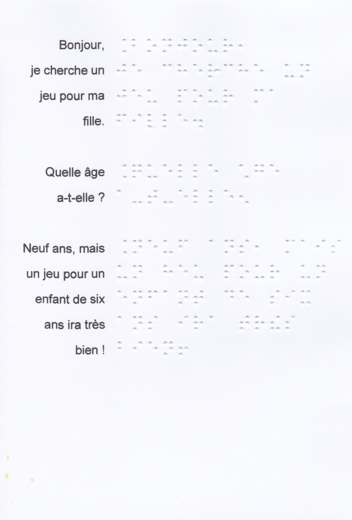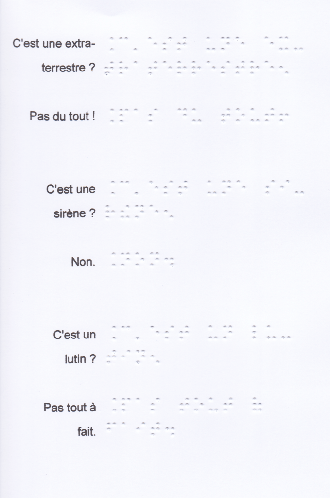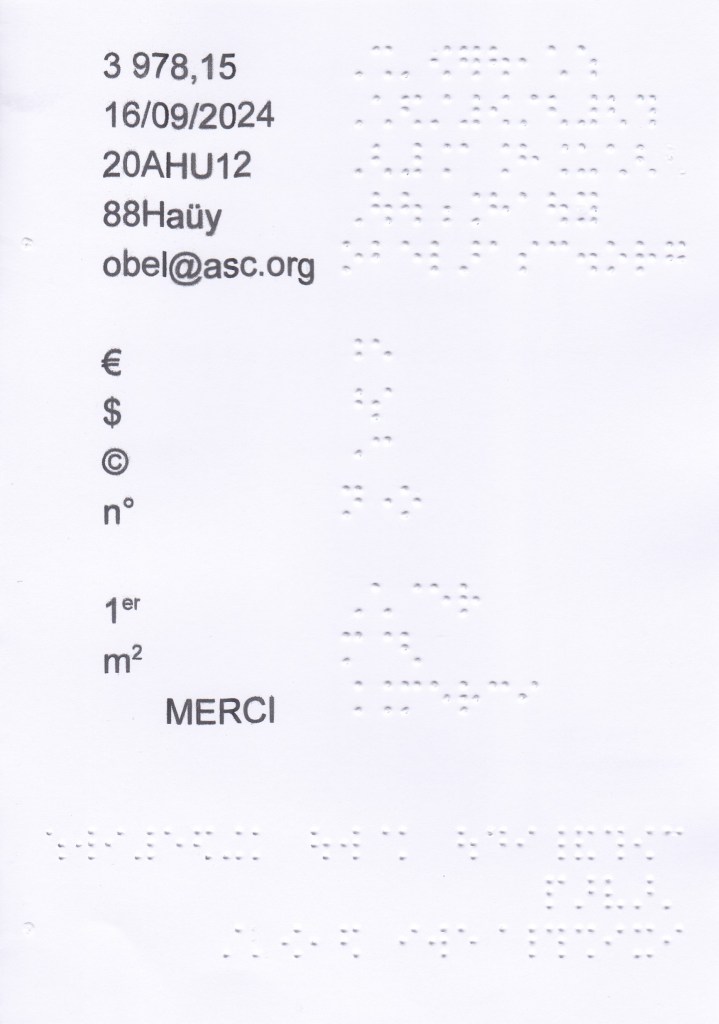 Dans ce dernier livret, vous trouverez les accents, les chiffres ainsi que les caractères principaux pour mettre en page de courtes histoires, l’écriture des nombres et quelques particularités telle que les dates, l’heure, quelques abréviations…. Ce n’est pas exhaustif par rapport à tout ce qui peut être fait en braille (tableaux, opération mathématique…)