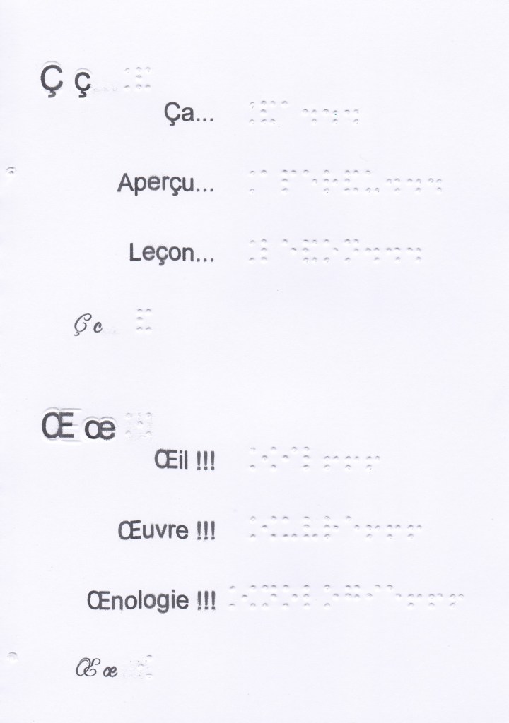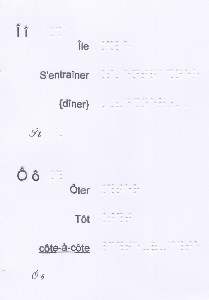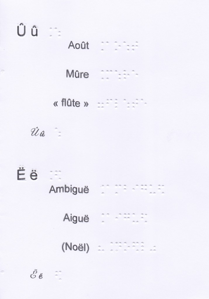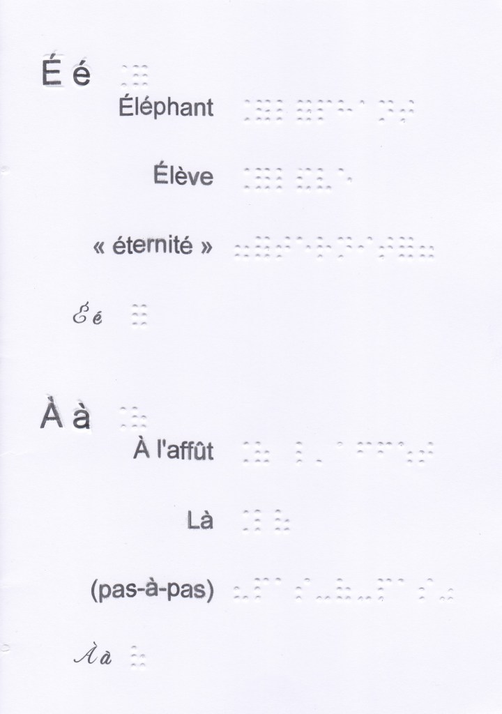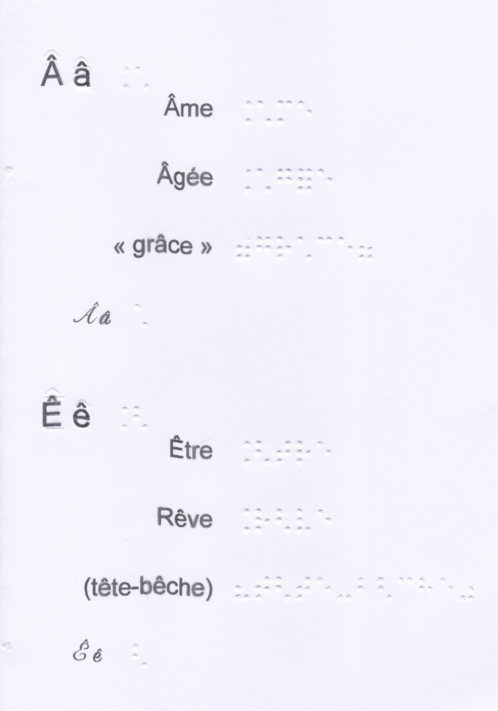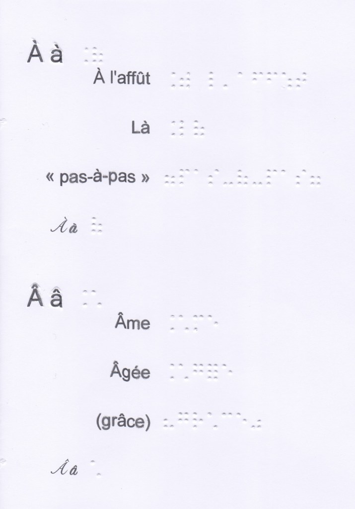 Les accents sont plus compliqués à retenir. J’ai fait 2 versions pour le livret afin de voir les accents en suivant l’ordre des séries du code braille ou en suivant l’ordre alphabétique.