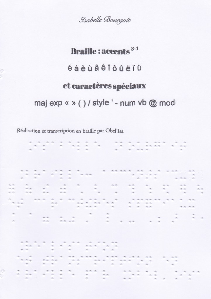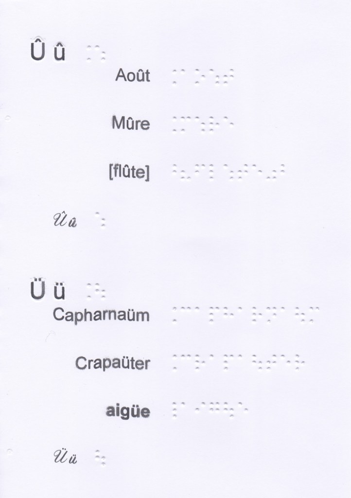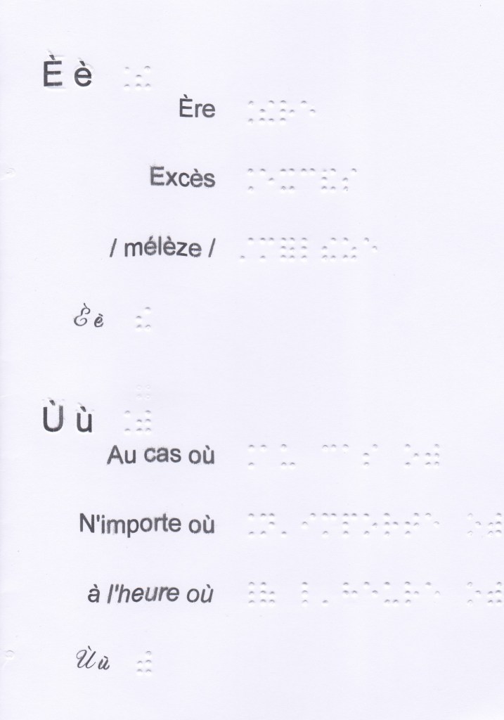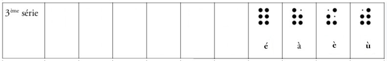 Les accents se trouvent dans deux séries : en fin de troisième série et la quatrième série de braille.